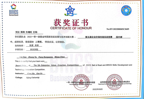 由金砖国家工商理事会、教育部中外人文中心主办,网中网软件公司承办的“2022一带一路暨金砖国家技能发展与技术创新大赛——第五届企业价值创造实战竞赛”于近日落下帷幕,国内外380余所高校参赛。经过前期广泛宣传动员、自愿报名、辅导授课、集中培训、自主练习、校内初赛等环节,我校会计学院选拔出刘云、郑雨、方增旺、王琛等4名学生,在高革、陈夏老师的指导下代表我校参赛,并最终取得国内赛团体二等奖的佳绩。