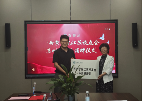 2025年7月12日,金鸡湖畔绿意盎然,姑苏古城文脉绵长,西京学院江苏校友会骨干增补会议暨苏州联络处揭牌仪式在苏州启智微纳智创园隆重举行。来自江苏各地的西京校友齐聚一堂,共叙同窗情谊,共话发展新篇。受任芳校长、程永清助理委托会计学院院长李海霞、党委书记李贺等与校友们共同见证这一重要时刻。