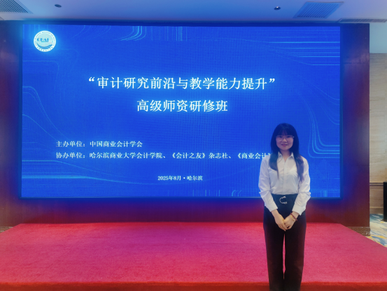 为适应数字经济时代对审计人才培养的新要求,提升审计课程教学质量与研究水平,西京学院会计学院选派卓越人才教育中心CIA教改实验班教师赵慧丽,于8月15日至18日赴哈尔滨参加由中国商业会计学会主办的“审计研究前沿与教学能力提升”高级师资研修班。