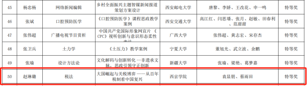 大赛共收到有效参赛案例1044项,经过专家综合评审,共有315项案例获奖,包括特等奖50项、一等奖105项、二等奖160项。我院教师凭借扎实的教学功底、创新的案例设计与深刻的思政内涵,在大赛中表现亮眼,其中,赵琳璐教师团队荣获特等奖,张淑雯教师团队荣获一等奖,赵联果教师团队荣获二等奖,充分展现了我院课程思政建设的丰硕成果与教师队伍的教学实力。