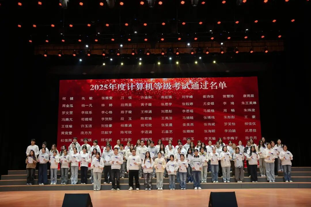 “智育之星”们在学业赛道与赛事舞台双线告捷,231人次斩获省级以上学科竞赛荣誉,2024级本科生计算机等级考试通过率高达84.6%,英语四六级全年通过317人,初级会计资格证一次性通过322人,97人获评学业奖学金,肖清羽、杨瑗珲、汪之茜三名学子斩获国家奖学金、校长奖学金,尽显勤学善思的学霸本色。