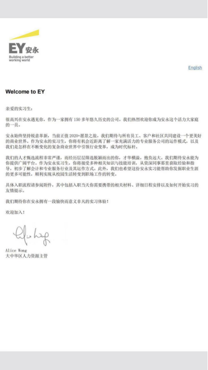 但是心中也有疑惑,一直在想,国际顶尖的事务所,全国乃至全球的知名财经高校学子都在使出浑身解数尽力争取,我一个普通三本高校的学生,人家能接纳吗?