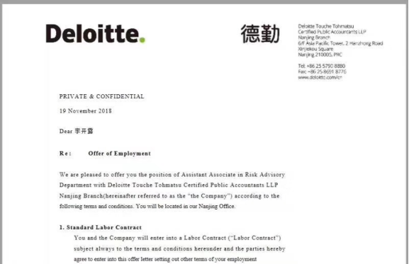 继西京学院会计学院2017届CPA教改实验班毕业生强金月入职安永会计师事务所后,近期,又传来我校CPA班毕业生李开露入职国际四大之一的德勤会计师事务所喜讯。
