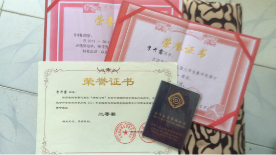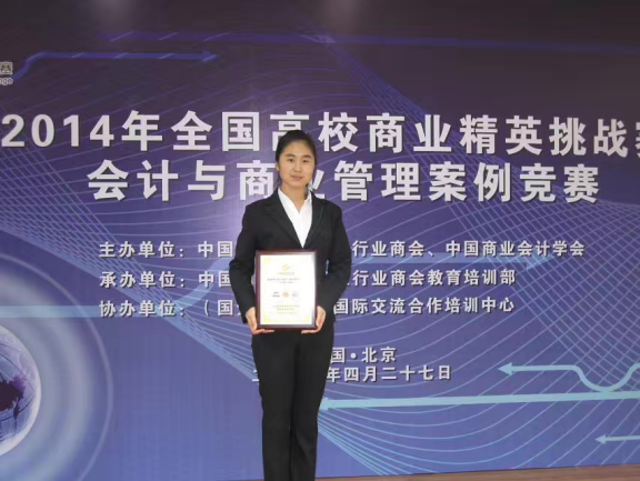 李开露是个学而不厌、孜孜以求的学生,不仅仅把精力投入学习课本知识,在会计学院推崇个性化发展的大背景下,她充分利用学院提供的竞赛平台,选择参加各种感兴趣的学科竞赛。
