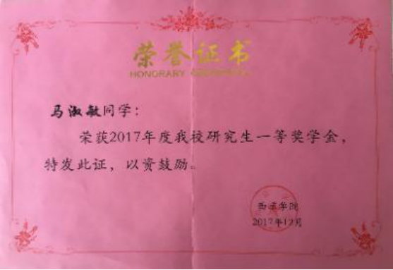 在硕士研究生学习期间,马淑敏连续三年获得研究生奖学金、2017至2018年期间,分别获得了“全国大学生会计与商业管理案例竞赛”国家级一等奖、三等奖。撰写了《大数据境遇下乌兰察布市集宁区民生资金审计的破局发展》等科研论文,考取了审计职业资格证书和银行执业资格证书。