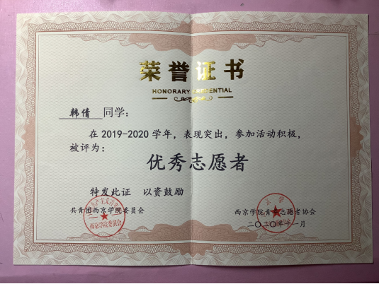 作为会计学专业的学生,在学院的统筹安排和任课教师的悉心指导下,她在大二便考取了初级会计师资格证,之后又考取了小学数学教师资格证,在校期间成绩优异,先后获得校级一等奖学金和校级三等奖学金。但她不拘泥于学习,积极参加竞赛,还获得了“全国高校企业价值创造实战竞赛校内赛二等奖”。在课余时间,她秉持着奉献、友爱、互助、进步的志愿服务精神,加入西京学院青年志愿者协会,积极参加志愿服务活动,获得优秀志愿者荣誉称号。决定考研后,她像很多同学一样选择加入了西京考研人之家——行健书院。