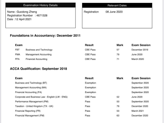 A考过程并非一帆风顺,2021年3月考季,寒假期间本来有充足时间备考,理应是最不该fail的,然而我这段时间在德勤实习,实习的时候工作特别多,加班是常态,留给我看书的时间特别少,虽然这次F7险过,但我知道这个分数是完全不能支撑我以后去考P level的SBR,所以备考的时候一定要充分考虑自己的时间是否允许。