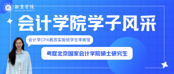 李婉莹,西京学院会计学院2024届CPA教改实验班学生,以扎实的专业基础和出色的复试表现,考取北京国家会计学院(税务专业硕士)研究生。