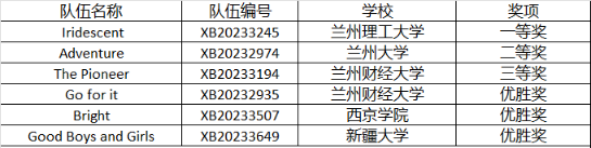 西北赛区区域决赛获奖名单(我校代表队排名第五)