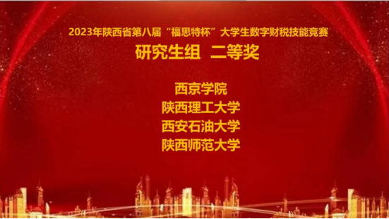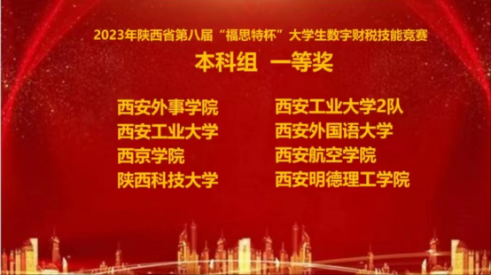 近日,由西安工业大学承办的陕西省第八届“福思特杯”大学生数字财税技能竞赛落下帷幕。本次参加比赛的共有西北政法大学、陕西科技大学、长安大学等41所高等院校。西京学院会计学院两支参赛队伍参与竞赛并荣获佳绩,其中CPA教改实验班李亚玟、张轩、寇文科、丁佳宝四位同学取得“本科组一等奖”,审计研究生杨振赫、汪之茜、王一鸣、朱梦琦四位同学取得“研究生组二等奖”。