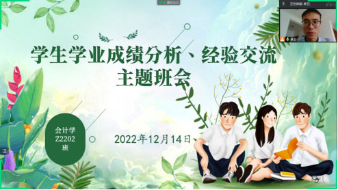 4.审计学2203班班主任吴会会,于12月18日,在腾讯会议就数学学习方法以及考研召开了主题班会。主要从数学课程、学习方法、数学竞赛以及考研等方面给同学们进行一个介绍,通过此次班会主要让同学们意识到高数的重要性,并为后续的学习做好规划。