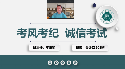2.会计学专升本2205班班主任何一舟,于12月15日,以“线上考试考风考纪与诚信考试”为主题,向学生再次强调线上考试的注意事项,提醒同学们注意雨课堂考试后台切屏次数、录制考试实况、与监考老师沟通和考前发烧请假等各类细节问题。班主任同时强调线上考试是同学们诚信考试的试金石,大家应遵守线上考试的考风考纪要求,不出现任何违反考试纪律的情况。