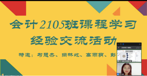 2.会计学B2105班班主任陈夏,于11月24日,邀请李小敏、方芳两位老师线上开展了大学数学、英语专业学习方法的讲座。两位老师为学生介绍了“做好预习、认真听课、认真解题、及时纠错、学会总结、学会管理”等六步法,帮助学生更好地学好大学数学、英语基础课程。于12月12日,邀请研究生勾慧杰及2019级高雨萌、2020级尚林屹等本科生开展数学、英语等基础课程学习经验交流活动。几位学生分别从毕业选择、英语好词好句积累、数学学习方法角度入手,鼓励大家做好积累,端正学习态度。