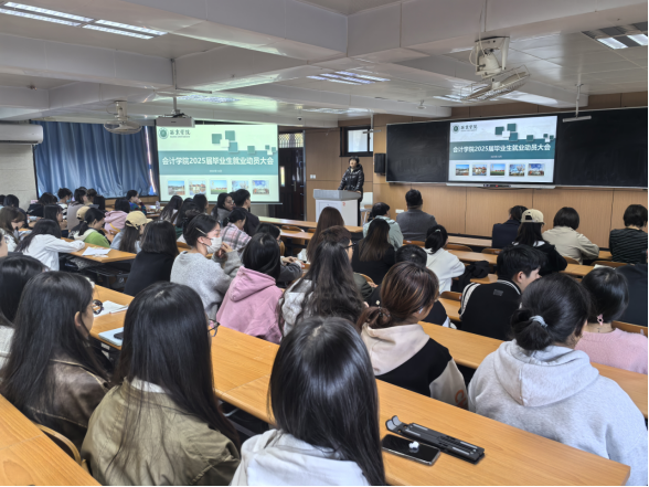 一直以来,会计学院学院始终高度重视毕业生的就业工作。就业动员大会的顺利召开,帮助同学们更好地了解了当前的就业形势,让同学们对未来职业道路也有了更加明确的认识。衷心祝愿每一位2025届毕业生都能找到心仪的工作,开启精彩的人生旅程!