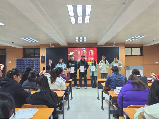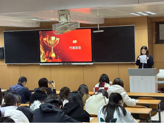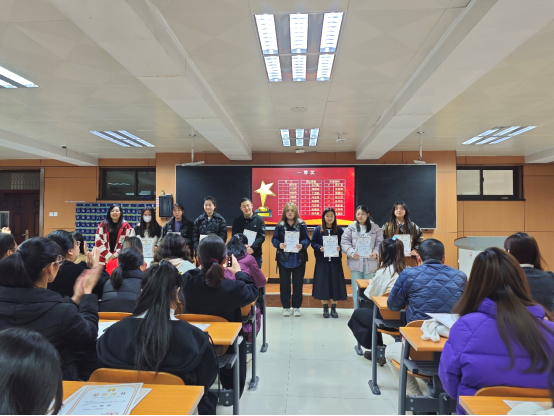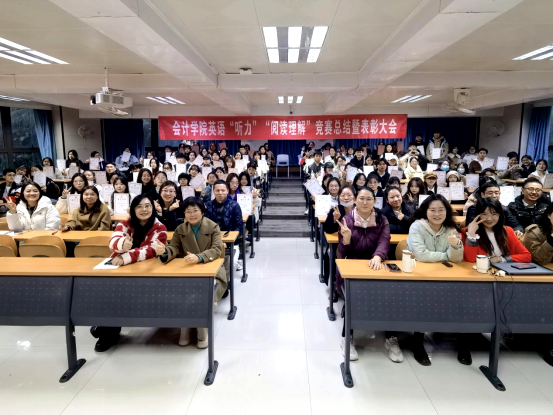 11月22日下午,会计学院在2329教室举办了英语“听力”和“阅读理解”竞赛总结暨表彰大会。旨在总结本学期2023级、2024级英语四级训练的效果、表彰先进、分享经验,推动学院人才培养质量持续提升。会议由2023、2024级英语四级负责人朱平平和陈逢怡一共同主持,学院全体本科生班主任、辅导员,2023、2024级获奖学生及部分学生代表参会。