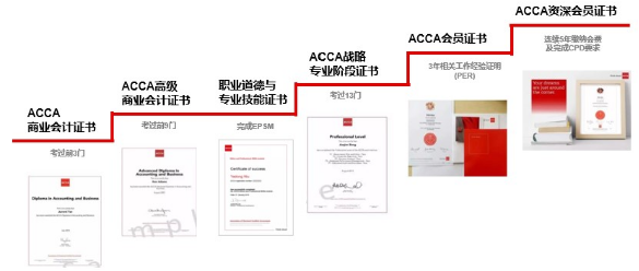 (3)多重证书:ACCA分阶段设有多重职业技能证书,受到相关行业高质量就业单位的高度认可,是毕业生实现高质量就业的有力竞争优势。通过基础知识阶段课程(F1-F3)考试,可获得ACCA 商业会计证书,通过应用技能阶段课程(F1-F9)考试,可获得ACCA高级商业会计证书,通过职业道德模块EPSM考试,即可获得职业道德与专业技能证书,通过战略专业阶段4门课程考试,可获得战略专业阶段证书。