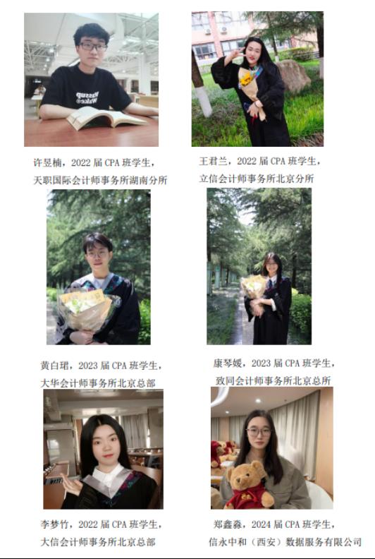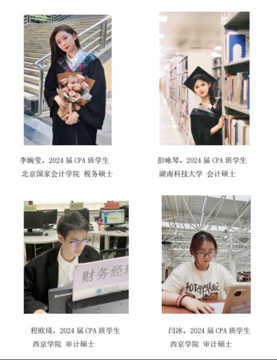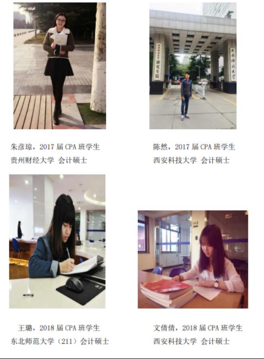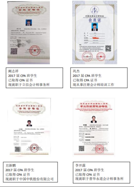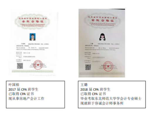 CPA教改实验班连续多年初级会计、初级审计职称证书通过率100%,并且已有多名毕业生已取得CPA全科合格证书、专业阶段合格证书。
