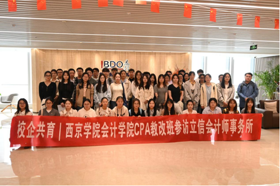 为深化产教融合,打通从理论到实践的认知闭环,助力学生勾勒清晰的职业发展蓝图,9月25日下午,我校会计学院CPA教改实验班师生一行前往立信会计师事务所(特殊普通合伙)西安办公室开展参访交流活动。本次活动作为会计学院实践教学体系的重要一环,旨在让学生身临其境,感受顶尖会计师事务所的专业氛围与文化底蕴,为学业规划与职业选择提供精准导航。