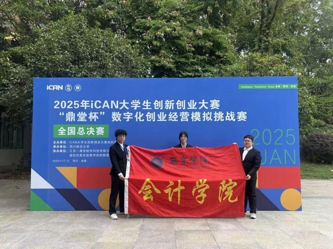 11月7日至9日,由高等学校国家级实验教学示范中心联席会经济与管理学科组牵头主办、四川师范大学全程承办、江苏一鼎堂软件科技有限公司鼎力协办的2025年iCAN大学生创新创业大赛“鼎堂杯”数字化创业经营模拟挑战赛总决赛圆满落下帷幕。西京学院会计学院学子在这场国家级赛事中表现突出,斩获国家级二等奖。