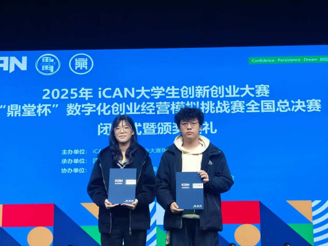 2025年11月,iCAN大学生创新创业大赛“鼎堂杯”数字化创业经营模拟挑战赛全国二等奖;
