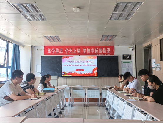 5月17日,会计学院党委党纪学习教育读书班在2314教室开展辅导员集体学习暨警示教育观影活动,会计学院党委书记李贺、纪检委员陈垚希及全体辅导员参加。