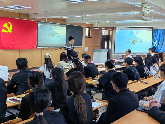 5月17日,会计学院党委书记李贺在2329教室,为第四党支部学生党员讲授党纪学习教育专题党课,四支部委员、全体学生党员参加此次党课学习。