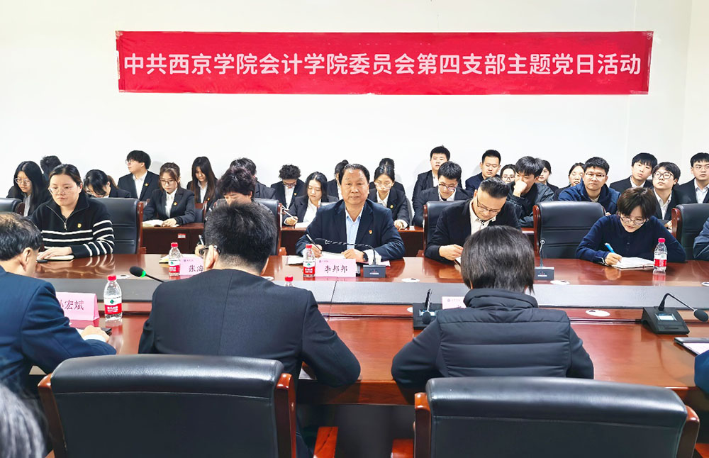 李邦邦强调,会计学院党委要深入学习贯彻党的二十届三中全会精神和全国教育大会精神,发挥好战斗堡垒作用和党员先锋模范作用,带领全院党员落实好《西京学院加强党员作风建设十条措施》《西京学院充分发挥党员教师先锋模范作用六条要求》,以优良党风转作风带教风促学风,促进学生全面成长成才,在推动学校高质量发展中作出会计学院贡献。